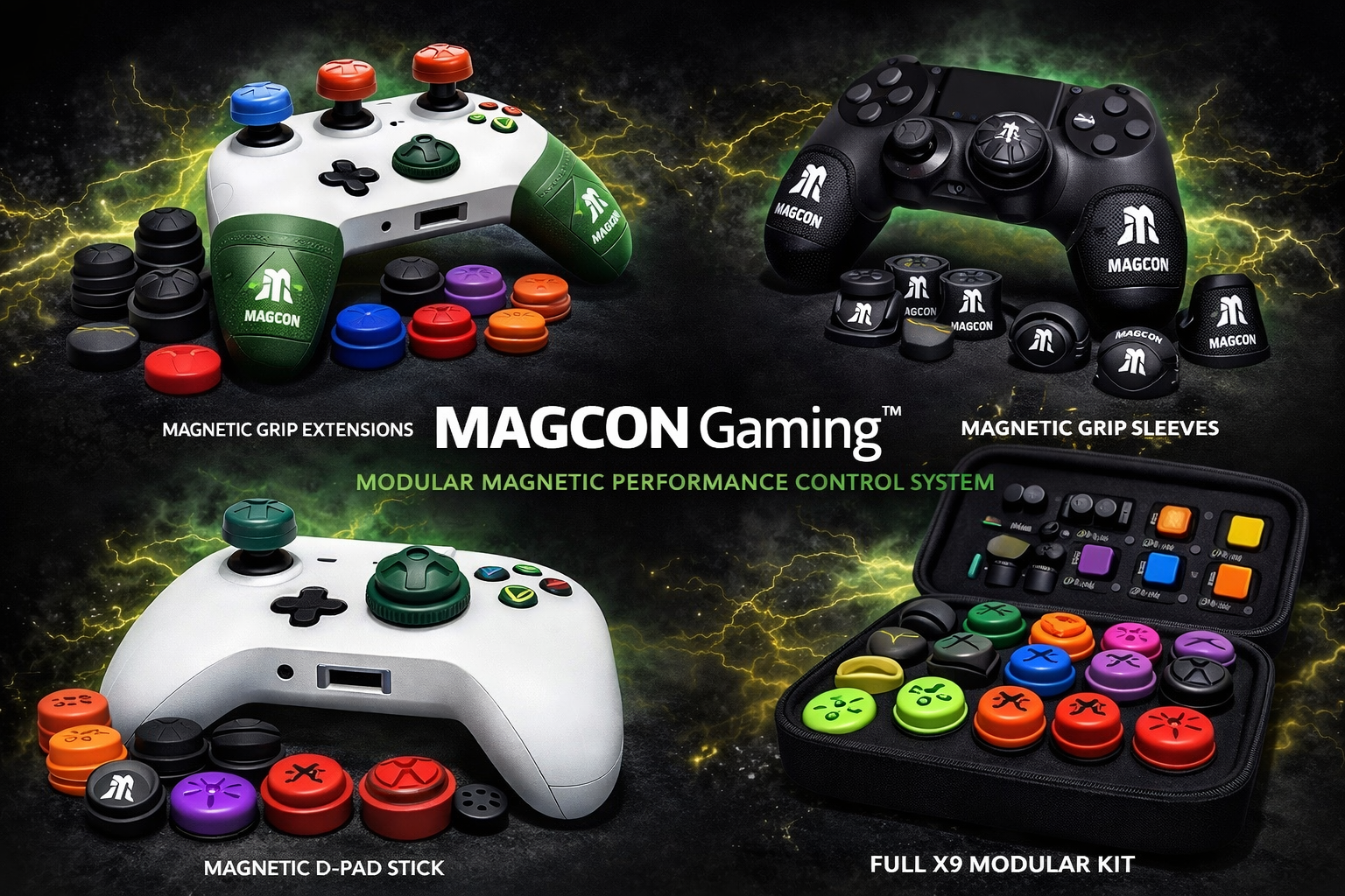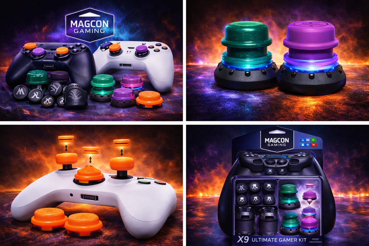 MagCon Gaming X9 Magnetic Connect ULTIMATE GAMER Kit | Performance Thumbstick Grips and Extensions | D-Pad Fight Stick | For Xbox; PlayStation; Nintendo; PC; Handheld