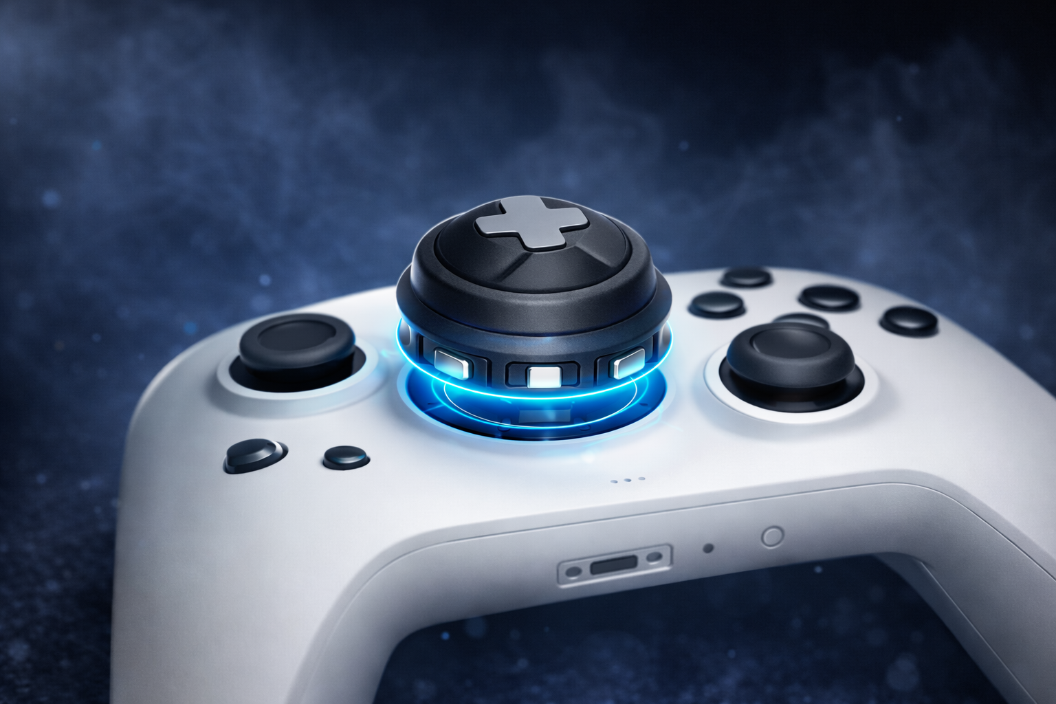 A domed, elevated directional pad designed for quicker transitions and cleaner inputs—ideal for fighting games and precision play.