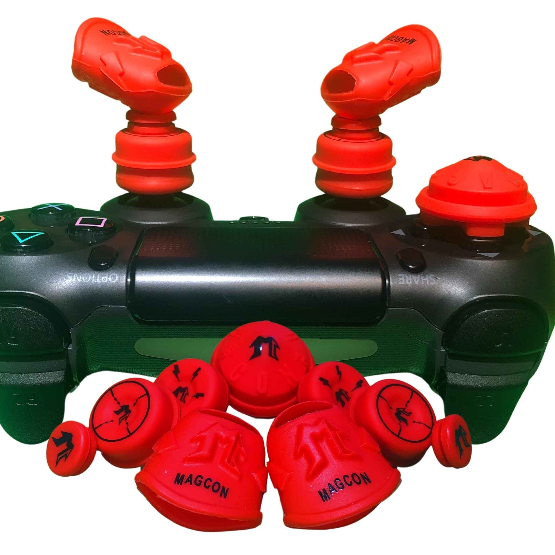 Utilize this MagCon Gaming X9 Magnetic Connect ULTIMATE GAMER Kit | Performance Thumbstick Grips and Extensions | D-Pad Fight Stick | For Xbox; PlayStation; Nintendo; PC; Handheld set on any gaming controller for added height, increased accuracy, and to prevent your thumbs from slipping off the joy sticks.